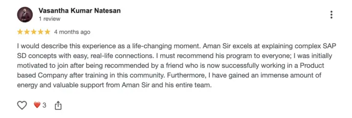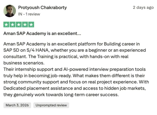 Thousands of professionals have joined Aman’s SAP programs and shared their experience through verified public reviews.